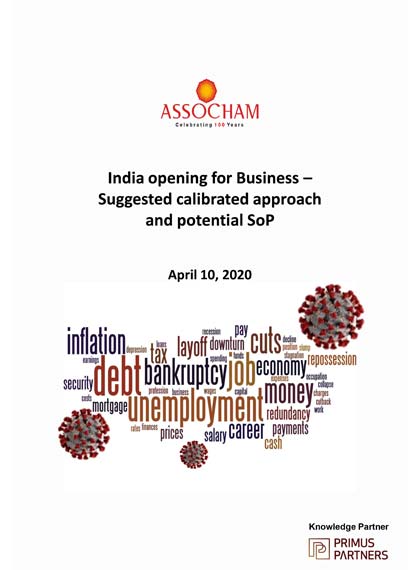 ASSOCHAM greatly appreciates the measures the Government has taken to protect the life of every Indian and also the work done by Government and Private sector front-line staff at this time of need. As we continue to work on controlling the pandemic, we also recognize the need to plan and take steps for gradual opening of the economy to protect the overall interest of the nation as well as help the most vulnerable. Suggested below are ideas for th...